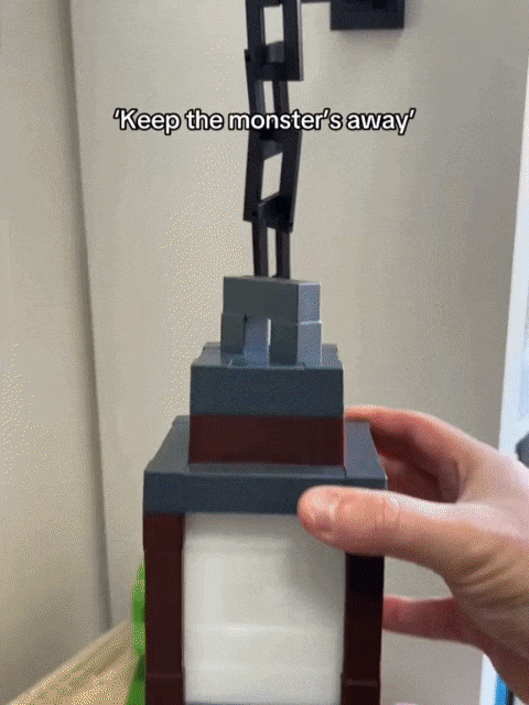 The lantern is designed with a foldable mechanism that mimics a wall torch. It has mounting slots that allow you to easily hang it on a nail, hook, or adhesive strip on your wall, or you can fold it up to sit flat on a table.